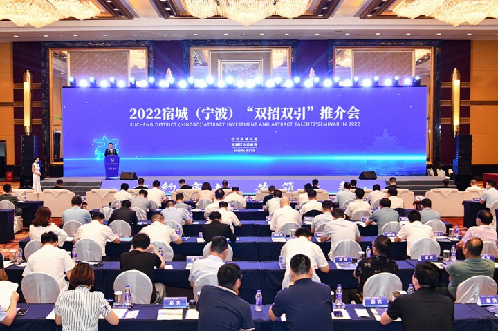 6月27日,宿城在宁波甬江之畔举办2022宿城(宁波)“双招双引”推介会,共达成29个项目合作协议,协议投资总额185亿元。宿城区委书记陈伟在会上致辞。