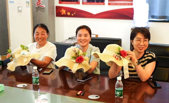 活动现场,在苏工苏作馆手作老师的指导下,彬台机械党员和职工共同体验了手工制作花艺草帽的乐趣。在制作过程中,有的职工专注地挑选着各色花材,用心设计每一处细节,有的职工则与身边的同事轻声交流,共同探讨花艺搭配的技巧。随着时间的推移,一顶顶色彩斑斓、创意十足的花艺草帽逐渐成形。大家互相展示并分享了自己的创作灵感,现场洋溢着欢声笑语。