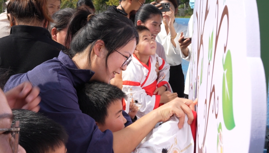 “一日为师,终身为父。” 孩子们向老师行拜师礼,承诺听从教导,勤奋学习,遵循尊师重道古训。