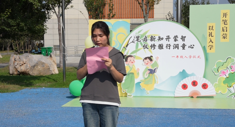 南蔡实验学校校长陈宏志向一年级的萌娃们致以诚挚的欢迎。他强调“开笔”仅是人生长卷的开端,未来的精彩需要孩子们用勤奋、善良、智慧与勇气亲自书写。学校愿与家长携手共育,助力每一个孩子习礼明德、修身启智,共同创造美好未来!