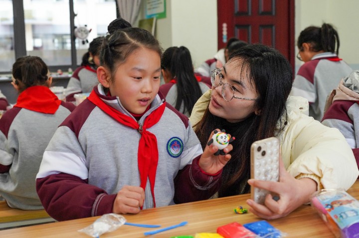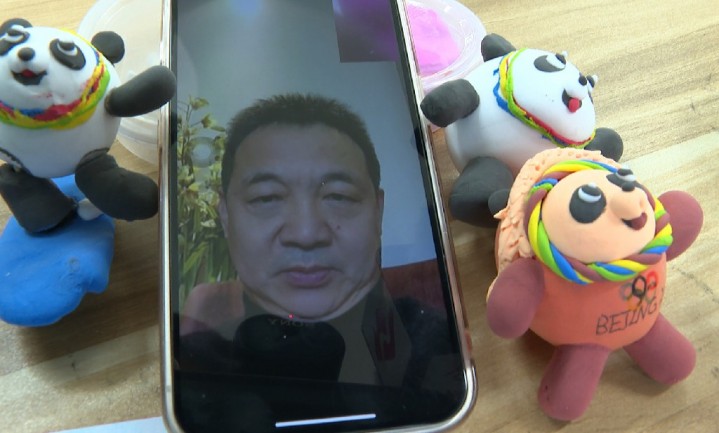 现场记者注意到,冰墩墩制作完成后,孩子们并没有带回家,而是争着想送给学校的一位老朋友——张涛,为此孩子们还通过手机和他进行视频通话,并邀请他来学校做客。