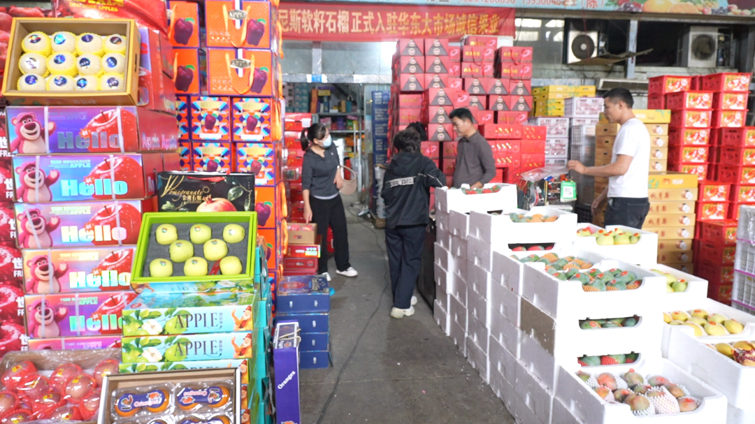在华东农业大市场,各类新鲜应季水果同样琳琅满目。当前水果批发价格较为亲民,橘子每斤1元多,石榴每斤在2.5元至2.6元之间,走量十分可观。