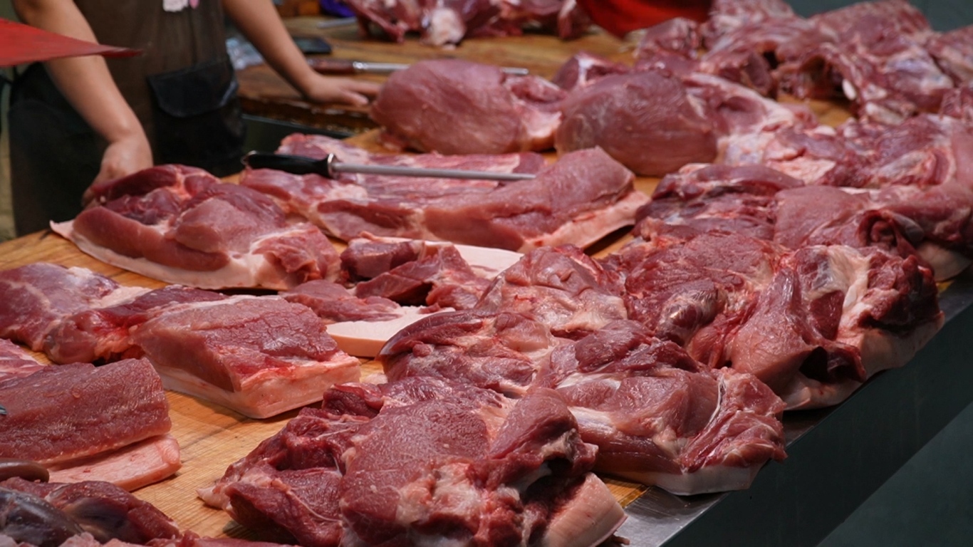 经营肉类的摊主介绍,近期,猪肉价格比较平稳,五花肉、腿肉在17元每斤。为了迎接长假,他们增加了猪肉的进货量。