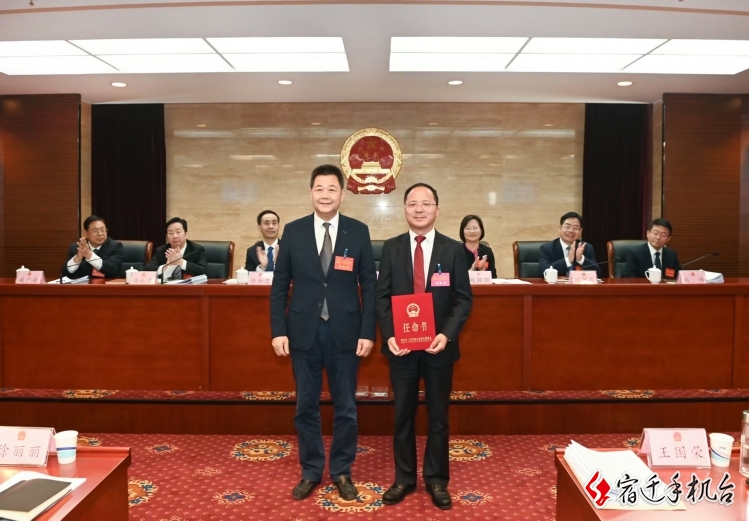 会议通过人事任免事项,决定任命王国荣为宿迁市人民政府副市长,并颁发任命书、举行宪法宣誓。