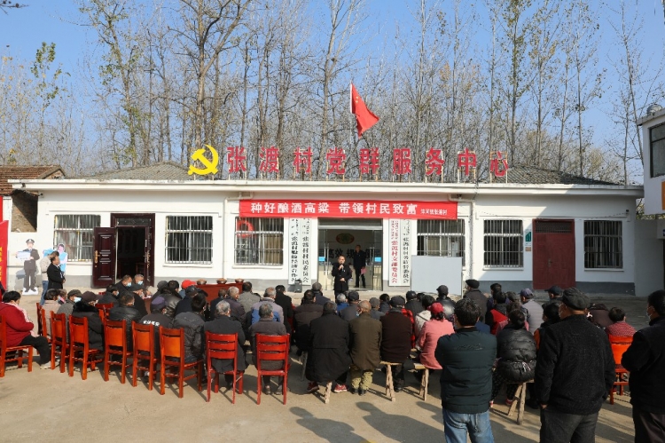 秋来五谷丰,高粱别样红。11月15日上午,宿迁市洋河新区张渡村党群服务中心门前热闹不已,这里正在举行一场“种好酿酒高粱 带领村民致富”高粱分红主题活动,现场通过介绍合作社运营模式、讲解酿酒高粱种植要点、免费发放高粱种粮券以及股民分红等环节,畅谈村民致富新途经。