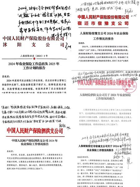 政府领导的批示是对宿迁人保三农工作的充分认可。宿迁市分公司将始终坚守“人民保险,服务人民”初心使命,努力建立健全农业产品风险保障体系,提升服务保障粮食安全和地方特色农产品供给能力,为实现区域全面乡村振兴和农业农村现代化持续贡献人保力量。