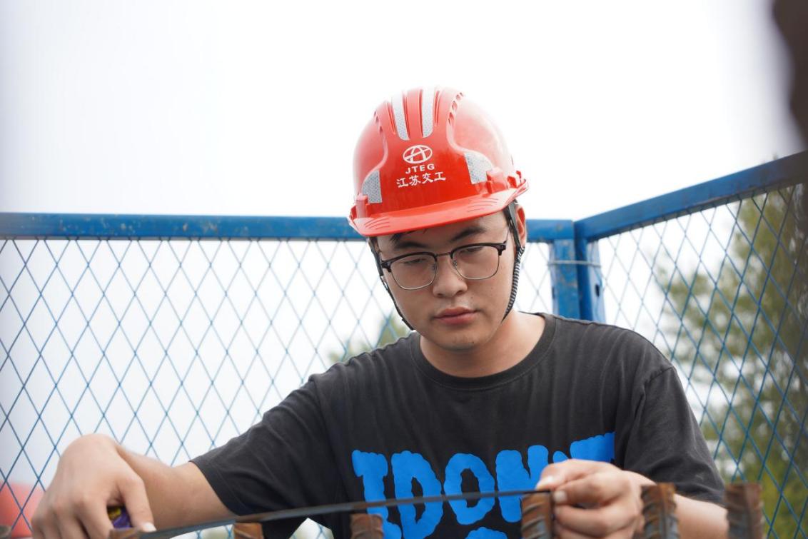 在宿连航道二期桥梁标项目部,有一位27岁的质检科主办,他叫纪玉球。他已经在桥梁建筑行业工作了4年。国庆假期,他选择加班加点赶工期,确保施工顺利进行。
