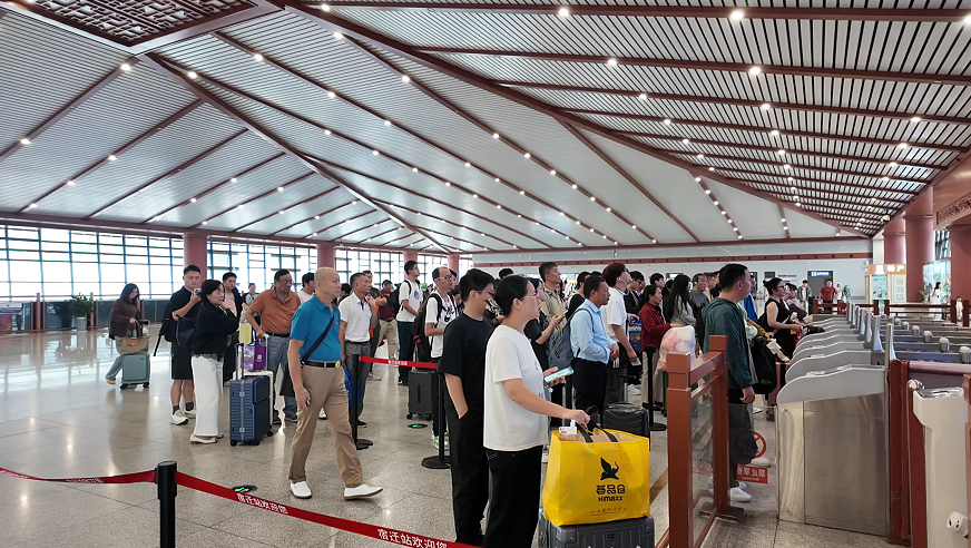 “7号,8号宿迁站将迎来返程客流高峰,客流方向以苏南、浙江、上海等方向为主,国庆中秋期间,宿迁站重点加强旅客运输组织工作,确保旅客假日出行安全。今天和明天的客发量预计在1.3万人次,相对于往年来比,今年增开了大概有10趟列车。”高铁宿迁站工作人员司晓彤说。