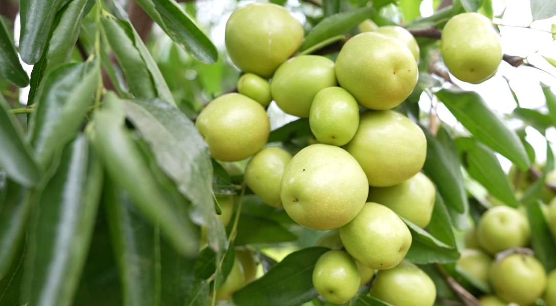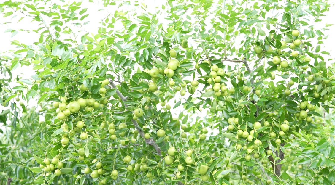 目前,冬枣正处于需要精心呵护的生长期,通过科学追肥补充营养,全力提升果实品质,预计总产量达6千斤,收入5万元。