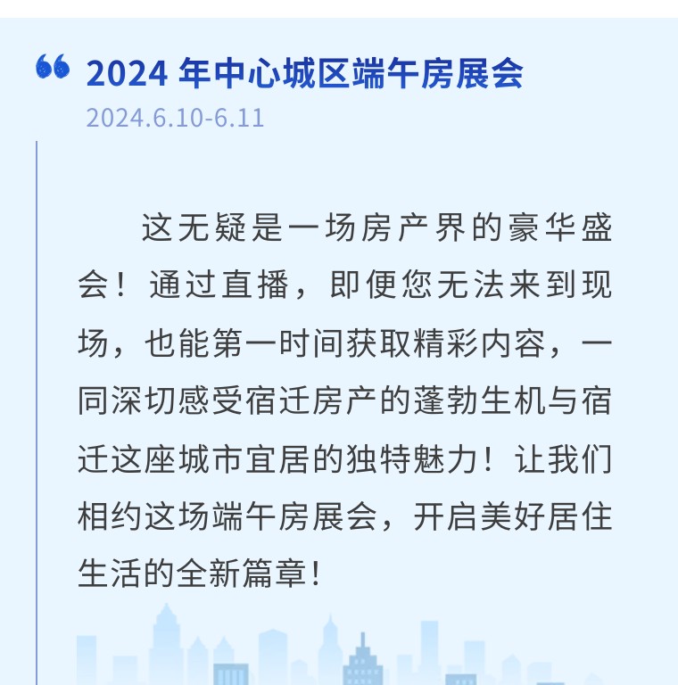 为了让更多市民深入了解本次惠民购房节的现场活动、购房优惠以及参展企业的楼盘信息,6月10日上午,将通过宿迁广电抖音号、视频号,爱宿迁抖音号、视频号以及宿迁手机台等多个平台进行现场直播。而且,这次将有多位广电主持人参与到直播活动当中!