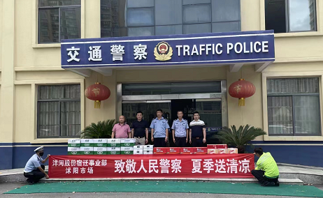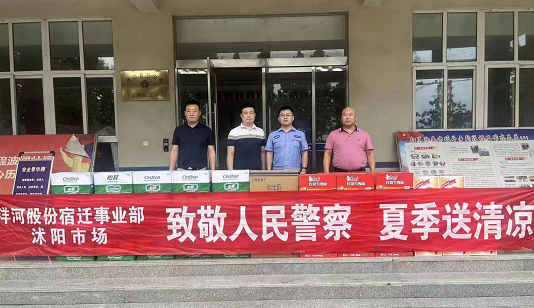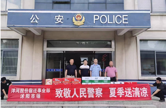 近日,洋河股份宿迁事业部沭阳分公司郭强带领经销商何波、王勇分别到沭阳县公安局交警中队(一中队、二中队、七中队)和基层派出所(永安路派出所、重庆路派出所、南湖派出所)慰问冒着酷暑坚守一线的人民警察。向所有坚守岗位的人民警察致敬!