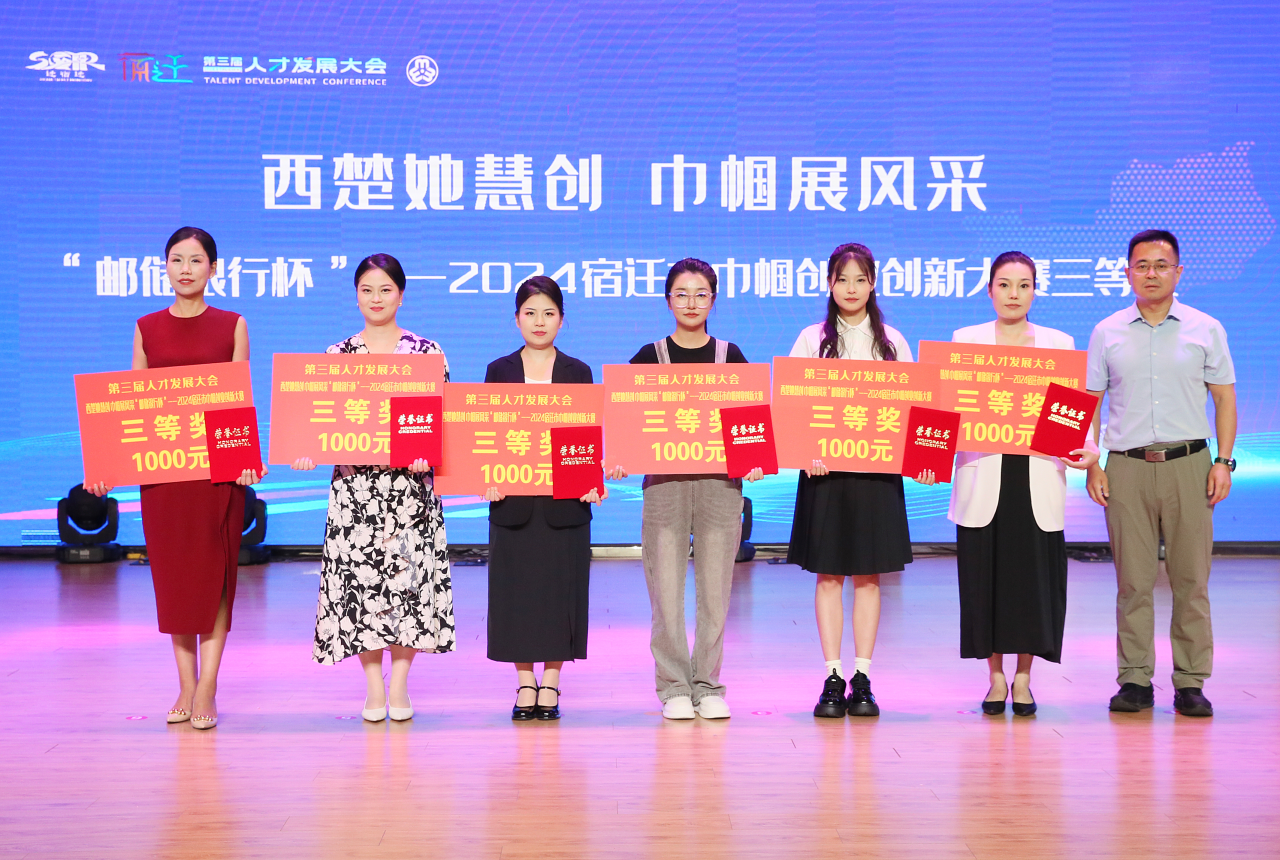8月12日,由邮储银行宿迁市分行独家冠名,市委人才办、市妇联等部门联合主办的第三届宿迁人才发展大会系列活动之西楚她慧创·巾帼展风采——“邮储银行杯”2024宿迁市巾帼创业创新大赛成功举办。市委组织部副部长、市妇联主席、邮储银行宿迁市分行副行长、市妇联副主席出席颁奖典礼,各县区妇联负责同志、市直各有关单位业务负责同志、创业女性代表共120人参加本次活动。