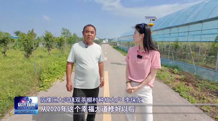 “十四五”期间,宿豫区将农村公路建设与乡村振兴、生态旅游等深度融合,规划打造总里程达230公里的“三环六线”“幸福大道”农村公路网络,串联起一个个新型农村社区、绿色果蔬和生态养殖产业基地。截至目前,宿豫全区“三环六线”“幸福大道”农村公路网络建设工程已投入14.7亿元,总里程达175公里。双茶棚村门口这条路,就是宿豫区幸福大道的一段。如今,8米宽柏油路能让大货车自由进出,直达田间地头,运输成本大幅降低。就在去年,李保龙的种植面积已经扩大到400多亩,预计今年产值达300万元。