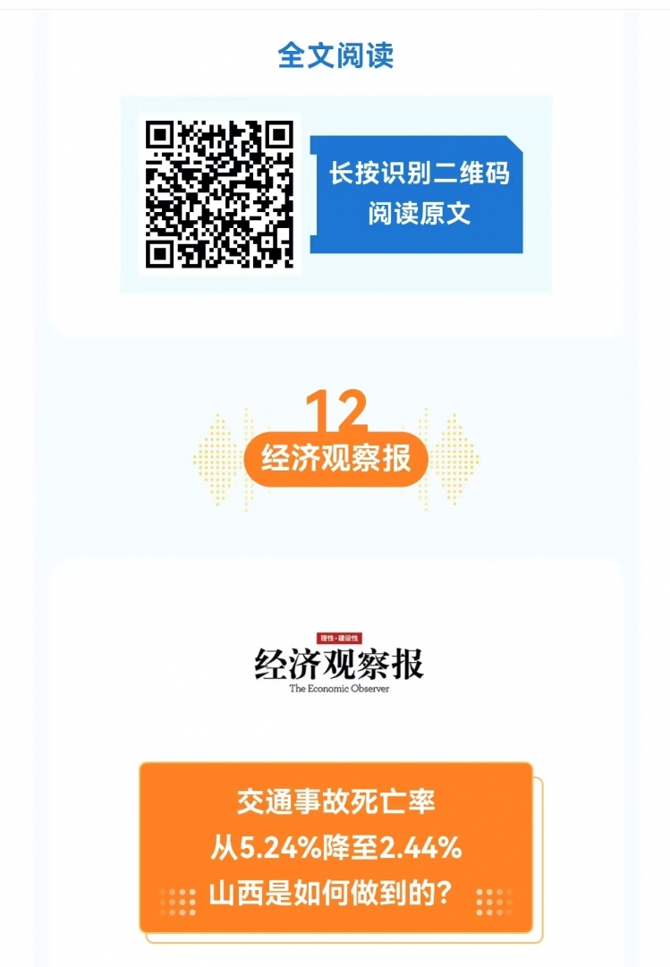随着这一机制建立和不断完善,山西省交通事故死亡率已从2019年的5.24%下降到目前的2.44%。