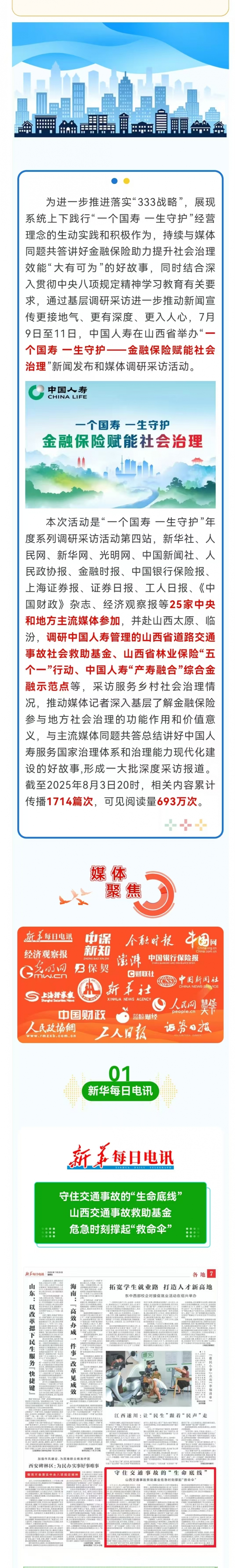 正值盛夏,中保新知走进这片既有人文印记又充满烟火气息的沃土。通过深入基层的调研走访,我们观察到,“三晋大地”上鲜有人知的是,作为社会的稳定器与经济的减震器,保险业正扮演着赋能社会治理,守护一方百姓平安的重要角色,作为金融央企的“排头兵”,中国人寿便是当中的一员。