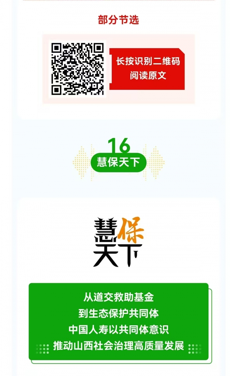 以山西为例,2024年以来,中国人寿集团旗下财险山西省分公司以“普惠共享、科技赋能、风险减量”为核心,深刻践行金融工作的政治性、人民性,将保险优势转化为社会治理关键引擎,与地方政府部门深化合作,把金融活水精准滴灌入公共治理、民生保障、乡村振兴、生态保护等社会治理全链条,以“共同体意识”重构治理生态,在三晋大地谱写出一曲保险赋能社会治理现代化的壮丽诗篇。