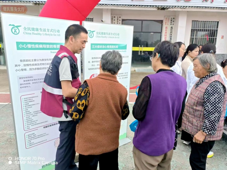 为提高公众“骨健康”意识,普及骨质疏松科学防治知识,9月25日上午,泗洪县疾控中心联合泗洪分金亭医院、大楼卫健中心、城北社区卫生服务中心走进花庄新苑小区开展2025年全民健康生活方式宣传月暨“‘骨’动生活,‘健’行未来”主题宣传活动。