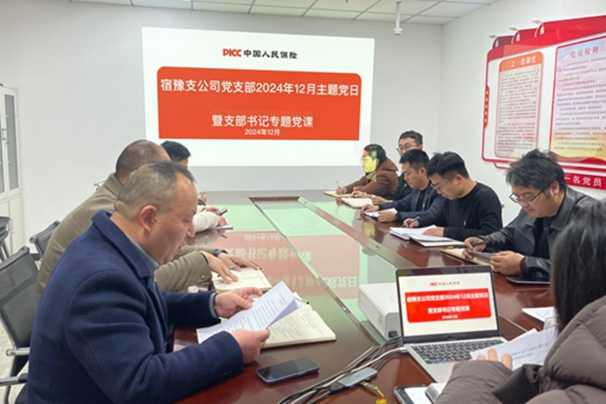 12月20日,人保财险宿迁宿豫支公司党支部召开12月主题党日暨支部书记讲党课活动。