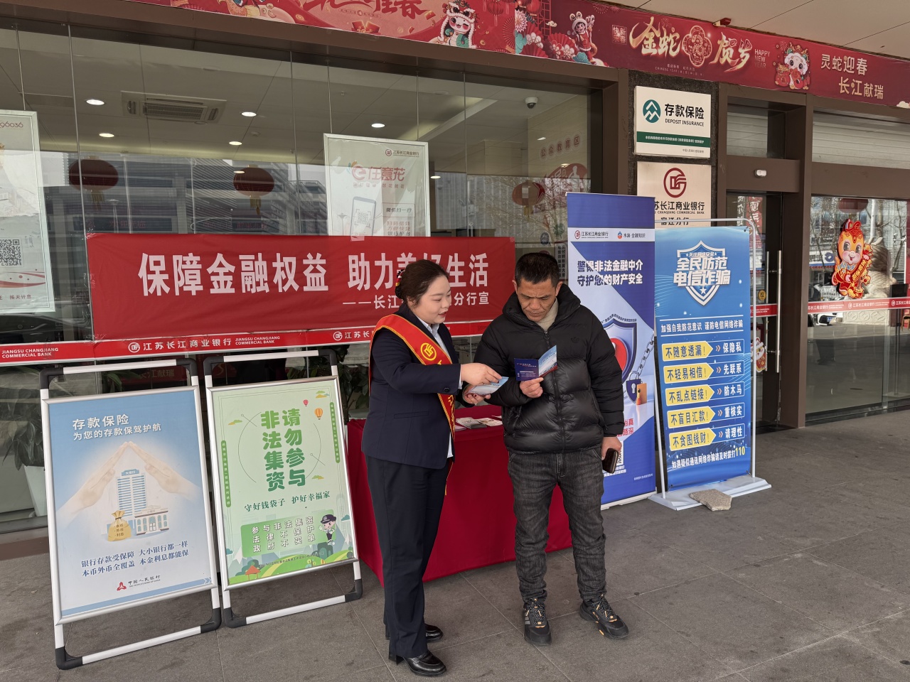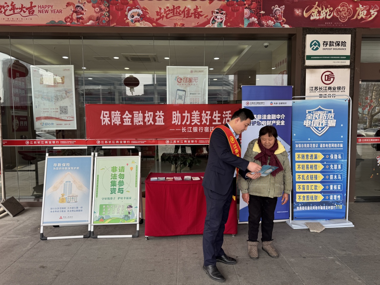 为切实提升金融消费者风险防范能力,践行金融为民理念,3·15前夕,江苏长江商业银行宿迁分行组织开展形式多样的金融消费者权益保护宣传活动。活动通过“驻点宣传+上门服务”双线推进,在普及金融知识的同时,为小微企业客户提供精准金融服务,赢得群众广泛好评。