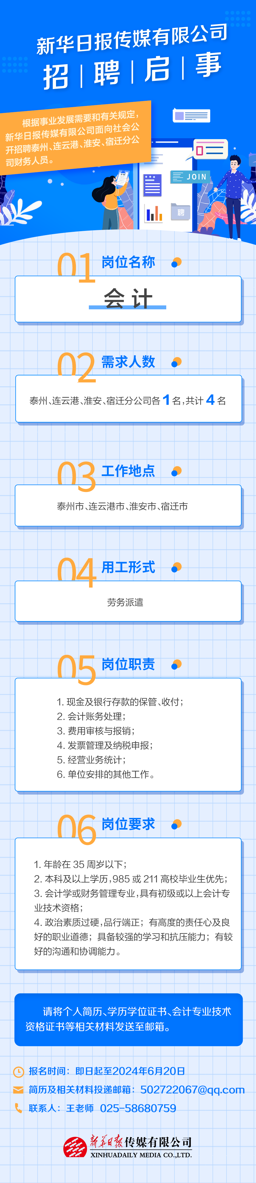 新华日报传媒有限公司招贤纳士 招聘会计4名!