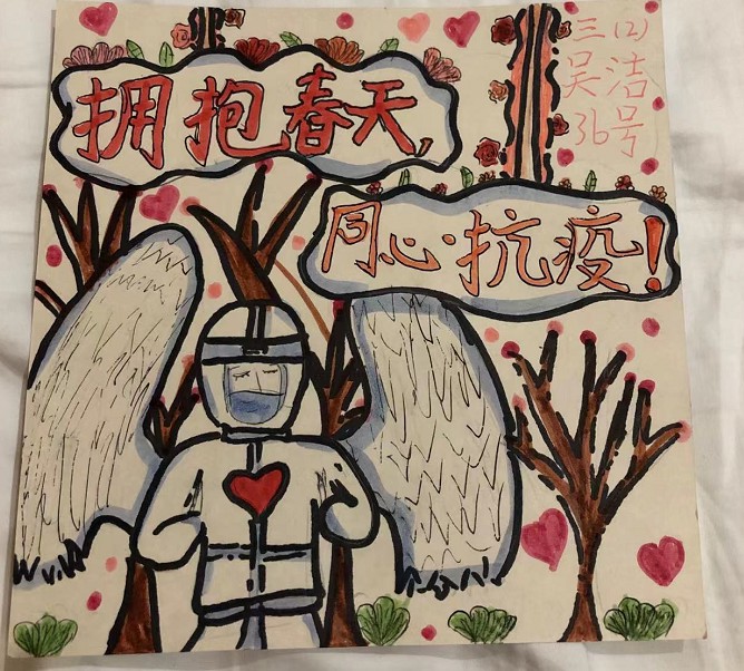 为了致敬隔离点一线防控工作人员,离别时,今年9岁上三年级的吴洁同学还画了一幅画《拥抱春天 同心抗疫》,并附上感谢信送给大家。据了解, 隔离前为了做好准备,洋河新区根据家庭情况提前分配好房间,提供必要的生活洗簌用品,对入住的学生安排营养配餐,备足药品。隔离点内,洋河新区还安排专人照顾隔离人员生活起居。 此次在洋河隔离结束的203人回到家中后将继续做好后续7+7管理,并完成体温登记和核酸检测,配合好疫情防控工作。