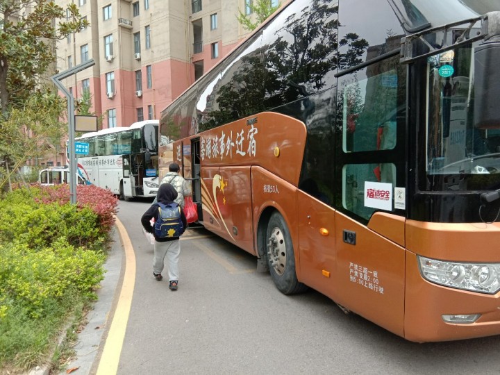 早上九点多,洋河新区7天优品酒店热闹起来,6辆大巴车等候在旁,来自宿迁市苏州外国语学校的168名师生家长整理衣物,快速打包,依次上车。莫衍之是宿迁市苏州外国语学校三年级(2)班的学生,自从接受集中隔离以来,在洋河已经呆了14天了。