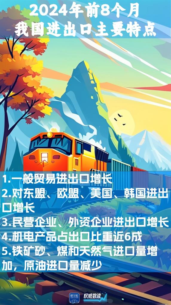 海关总署10日发布数据:2024年前8个月,我国货物贸易进出口总值28.58万亿元人民币,同比增长6%。其中,出口16.45万亿元,同比增长6.9%;进口12.13万亿元,同比增长4.7%。