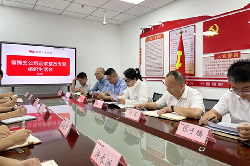 为进一步落实省、市公司巡察反馈问题整改,近日,人保财险宿迁宿豫支公司召开巡察整改专题组织生活会。