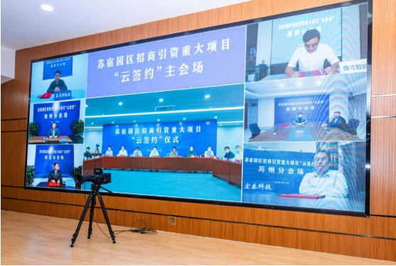 本次签约活动,园区创新工作方式,将签约活动搬上“云”端,“屏对屏”连线北京、深圳、苏州、徐州、盐城、涿州6个分会场,消弭时空阻隔,拉近彼此距离,为疫情形势下做好招商引资工作探索出了一条新路径。