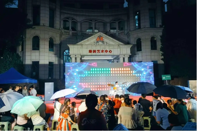 架子鼓表演、钢琴独奏、书画表演……十余个精彩节目轮番上演,为小区业主献上了一场精彩的文化盛宴。尽管晚会中途下起了雨,但居民们的热情丝毫不减,纷纷撑起雨伞,继续欣赏精彩的节目。