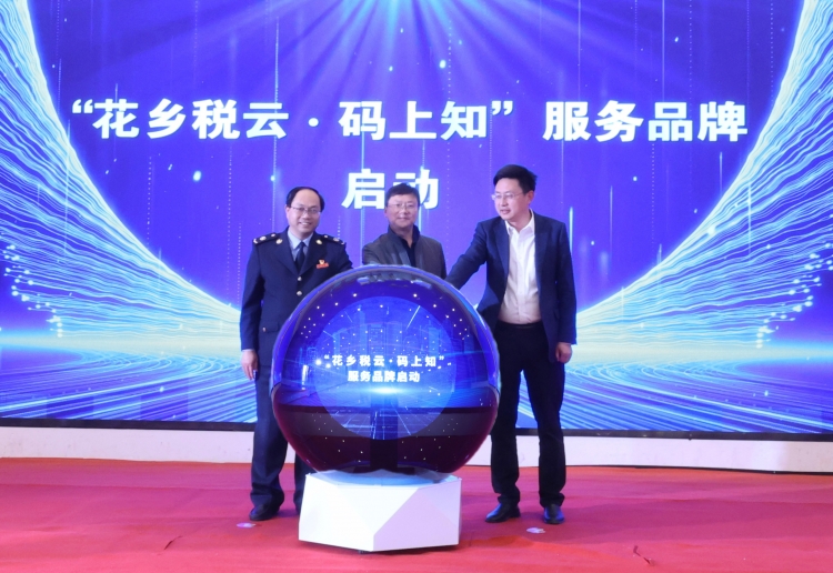 最后,市、县税务局领导和县政府办领导共同启动“花乡税云·码上知”服务品牌。