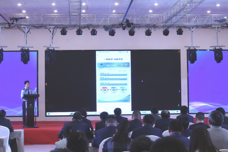 推介会上,对“花乡税云·码上知”各项服务功能进行现场演示。
