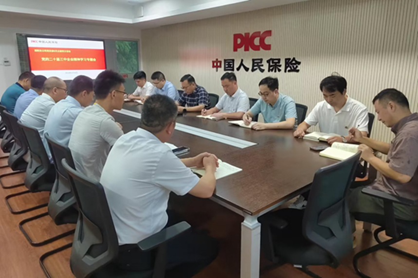 8月20日,人保财险宿迁泗阳支公司党支部召开专题学习会,集中学习党的二十届三中全会精神。