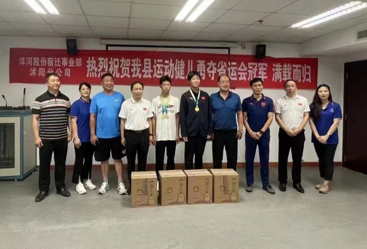 2022年7月29日,洋河股份宿迁事业部沭阳分公司慰问沭阳参加省运会的4名运动健将,礼赞拼搏、致敬奋斗。没有一份成功是轻轻松松得来的!唯有拼搏奋斗,才能摘取人生的桂冠;唯有不懈坚持,才能创造非凡的成就。洋河股份致敬每一位运动员!有种收获叫超越自己,有种成长叫未来可期。洋河股份宿迁事业部沭阳分公司祝愿4名运动健将赛场再传捷报!为我市争光!