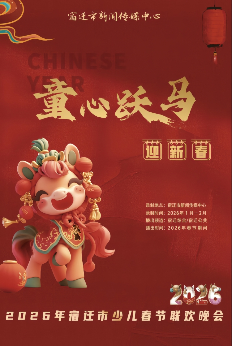 迎着新春的脚步,伴着悠扬的歌声,神州大地处处跃动着勃勃生机,新的希望正在我们心中升腾。2026年“童心跃马·迎新春”宿迁市少儿春节联欢晚会,邀请您携优秀节目共襄盛会。