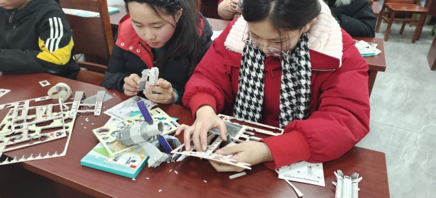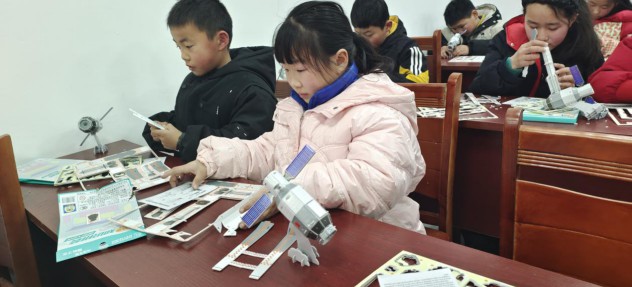 授课结束后,老师和罗庄村志愿者带领孩子们进行天宫一号立体模型DIY制作,孩子们充分发挥创意,耐心拼搭,一个个精美的“天宫一号”模型就完成了。现场气氛热烈,孩子们在动手实践中感受到科技的魅力,激发了他们对航天事业的向往。