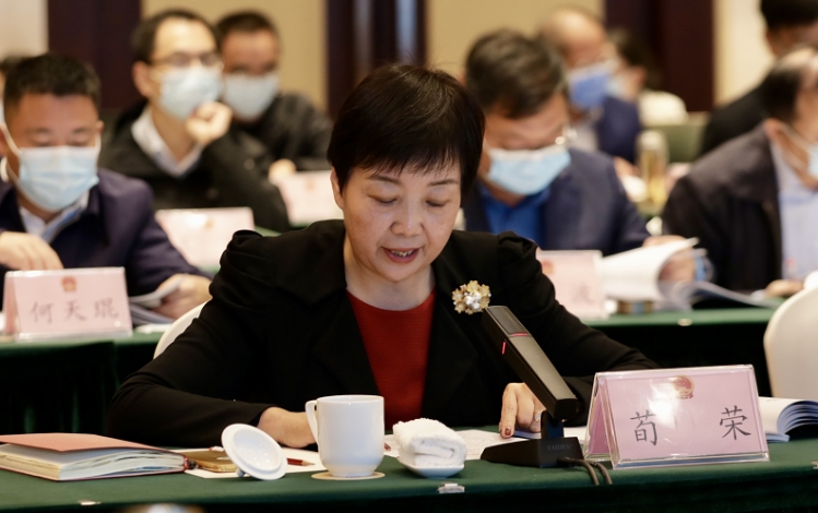 省人大代表、江苏绿港现代农业发展有限公司副总裁荀荣作题为《充分发挥农民在乡村振兴中的主体作用》的发言。